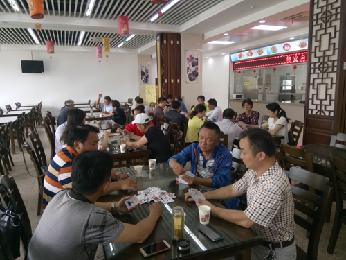 6月24日上午,物业和绿化环境工会小组举办了职工掼蛋比赛,特邀扬达物业两组选手同台竞技。各分部选拔出24名共12对选手参赛。本次比赛自由组合,抽签对阵,选手们密切配合、沉着应战,比牌技、比智慧,赛成绩、赛友谊,经过紧张、激烈地角逐,最终评选出前三对选手。