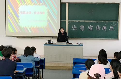 讲座伊始,马明明通过几个典型的犯罪类型和同学们开展了问答互动,现场气氛一下子活跃起来。随后,马明明以发生在我们身边的真实案件为例,从行为、意识、心理等几个方面深入浅出地为大家阐释了法律常识,教导同学们“谨言慎行”,“勿以善小而不为、勿以恶小而为之”,勉励同学们敬畏法律、珍惜青春。