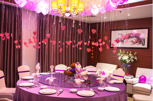 婚宴主题服务主要以“百年好合”为主题,以浪漫的彩色氢气球、象征“百年好合”的百合花烘托气氛,以为新人准备的爱心早餐及红枣、花生、桂圆、莲子四种坚果祝愿新人早生贵子等,充分表达了对新人的美好祝愿。