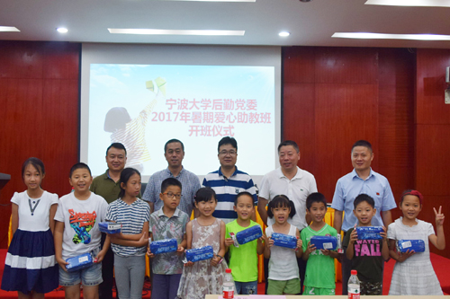 7月3日上午,后勤党政领导班子、各实体党支部书记、大学生助教员、学员及部分家长90余人齐聚一堂,共同参加2017年后勤暑期爱心助教班开班仪式。