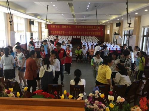 为更好地服务地方政府、为广大青少年带去青春健康知识,我校红十字会和同伴社经过前期精心策划、联系走访与准备,于7月1日一早来到朱家尖初级中学,布置场地、调试设备,待一切准备就绪,下午的第一节课顺利开讲。40名来自朱家尖初级中学各年级段各班级的同学上了一堂关于青春期生理及心理的健康教育课。开放式的课堂,让同学们很快就进入了状态,由同龄人传授青春健康知识,对于这群刚步入青春期的初中生们来说更加亲切和更容易接受。一堂课下来,同学们和志愿者相处融洽,寓教于乐的模式也让同学们对这群“大哥哥”、“大姐姐”讲的青春健康知识意犹未尽。