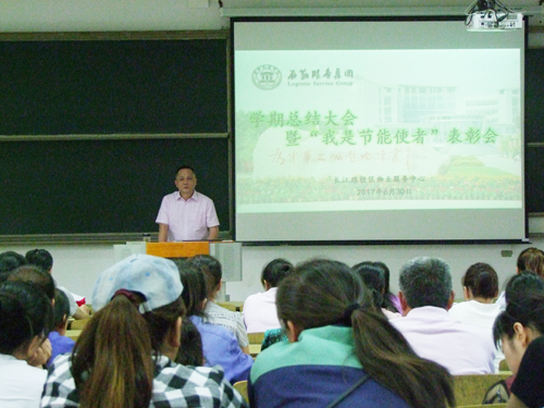 为了进一步总结经验、表彰先进,提高物业服务水平和服务质量,激励员工、凝聚力量,为学校、集团建设做出贡献。2017年6月30日下午4点,长江路校区物业服务中心在崇文楼阶梯102室隆重召开了2017年上半年度工作总结暨“我是节能使者”表彰大会。长江路校区物业服务中心全体员工近130人参加了会议。