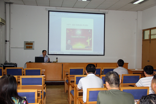 杨嵩先首先带领全体党员学习了中共中央组织部印发的《关于学习贯彻习近平总书记重要批示精神加强党委(党组)领导班子建设的通知》和毛泽东同志《党委会的工作方法》的主要内容,并结合中心实际工作,深刻阐述全文的科学内涵和现实意义。指出基层党建不能脱离实际工作,实际工作不能脱离基层党建,二者要做到水乳交融。要求全体党员结合工作实际,深入学习,把握实质,切实保证学习效果,不断提升服务全体师生的能力。