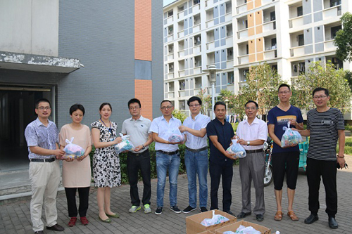 7月18日上午,常熟理工学院副校长李俊峰带队看望慰问两校区暑期坚守岗位一线的后勤保障员工,对冒着酷暑辛勤工作的后勤员工表示亲切慰问,并为每一位员工送上毛巾、饮料、花露水等防暑降温用品。