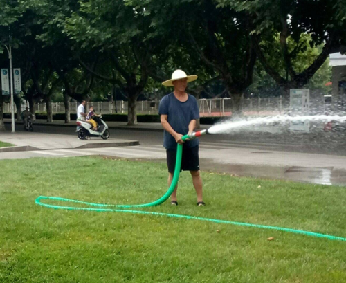 骄阳似火,热浪如涌,在这样的“桑拿天”里,多数人都躲进了空调房,但江苏科技大学的绿化养护人员在室外露天,战高温,斗酷暑,始终奋斗在第一线,抓紧对校园绿化进行药物喷洒,色块、草坪修剪,杂草拔除,抗旱灌水等养护工作。