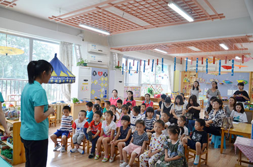 6月28日上午,来自海淀区13所幼儿园的园长、中层骨干及一线教师共计135人到北京交通大学后勤集团幼儿园参观交流,园长王翠肖及各部门负责人顺利完成了本次交流学习任务。