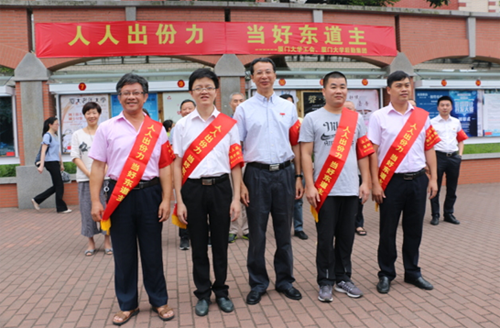 物业公司党支部全体党员及积极分子以厦门大学思明校区主干道为目标,开始了为期两个月的“人人出分力,当好东道主”校园清理活动。从勤业餐厅到大南校门,从三家村到科艺中心,从建南大礼堂到上弦场,支部党员们佩戴党徽、臂章,左手拿着垃圾袋,右手拿着工具,一路上专注地盯着地面、台阶、绿化带、死角夹缝搜寻不可降解的垃圾物。每每不到一个小时,都已战绩赫赫:操场边街道两边的传单页、店面阶梯的垃圾、石凳下的烟头、喝完的奶茶杯、塑料袋……哪怕是藏在花坛里的烟头、纸屑也都被一一清扫出来,装进了垃圾袋;看到工行门前的“停车场”,自行车乱停乱放,支部党员们又化身“大力士”,把自行车摆放整齐,腾出了人行道……红色的臂章在阳光的照耀下显得分外鲜艳。“人人出分力,当好东道主”的校园垃圾清理党日活动已经常态化,这是延续做好东道主展示新形象,更是发自支部党员同志们内心的主动行文,作为一名党员,有义务自觉维护公共秩序,爱护美丽环境,做文明新风的传播者、井然秩序的维护者。