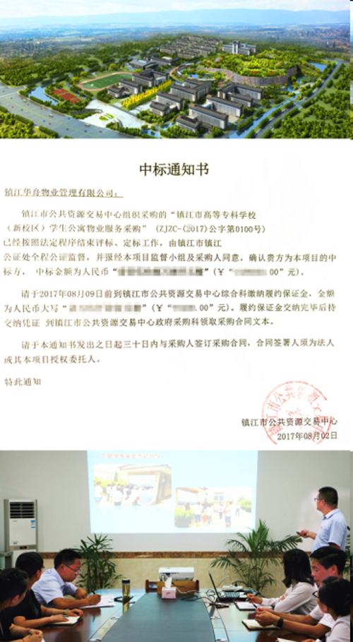 根据江苏科技大学华舟公司年初“重点拓展学校物业服务项目,提升‘書苑管家’学校物业服务品牌影响力”的工作部署,经过公司经营班子团结协助、前期现场查勘、策划、公司运营管理中心高质高效的投标文件编制响应,8月2日顺利中标镇江市高等专科学校(新校区)学生公寓物业服务。