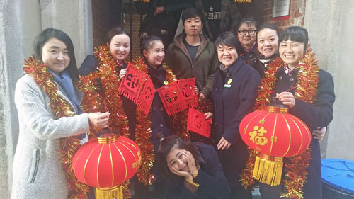 元旦与同学们一起挂灯笼