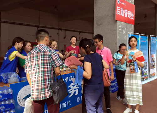 伴随金秋九月的到来,九江学院迎来了万余名2017级来自全国各地怀揣梦想的莘莘学子。为了让广大新生及家长能够更加轻松办理手续,我校后勤管理处在新生报到现场设立“迎新送清凉”服务站点全方位为新生提供便利。