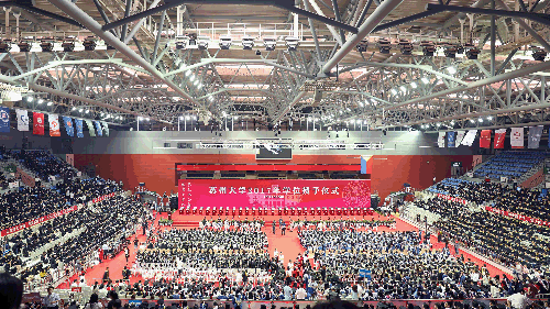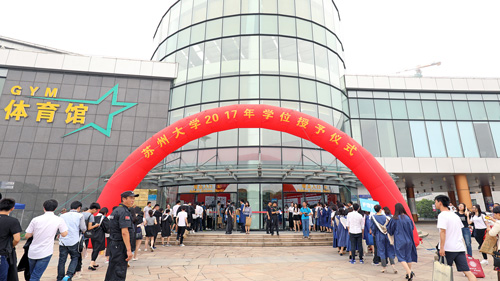 6月28日上午8时,苏州大学2017年学位授予仪式正式开始。会场内,校园歌手的深情演唱、熊思东校长的幽默致辞,不断将仪式气氛推向高潮。