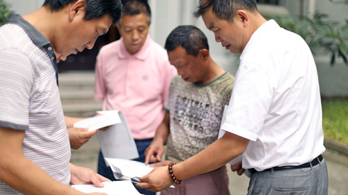 潘主任(右一)在研究出行路线
