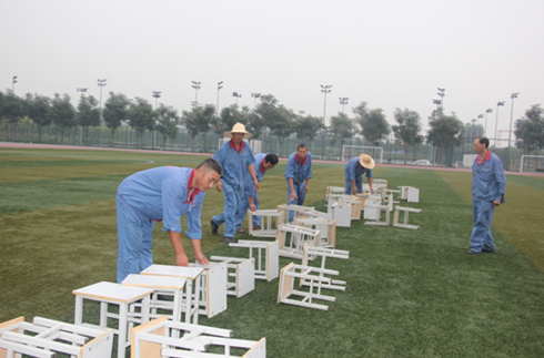 9月15日一早,昌欣物业员工早上六点就位体育场,突如其来的秋雨给主席台布置工作带来了不小的困难。为避免桌椅被淋湿,影响主席台人员就坐,物业员工们立即启动应急预案,运来塑料布,以最快的速度将塑料布铺放在座椅上,并在最上方铺放一层白色坐布;在桌子上盖上塑料布,待雨停后尽快将塑料布拿去,最大限度地保证雨后主席台的干净、整洁。在学校办公室的指导下,物业员工们抢时间为即将开始的开学典礼会场备好所需所有物品,做好最后准备。物业工作人员将提前制作的主席台台卡摆放到位,搬运并摆放好演讲台,摆放饮用水,搬运并摆放会场所需座椅,以崭新的姿态迎接开学典礼的到来。