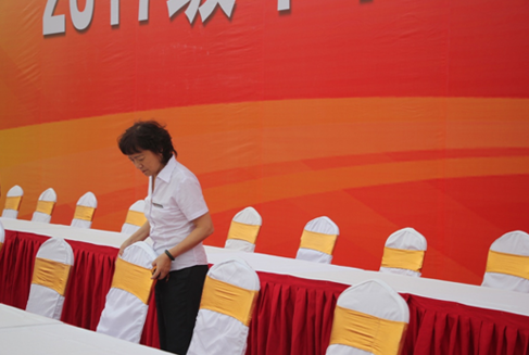 13日早上开始,各项准备工作有序进行,物业环境管理部员工对会场进行了彻底冲刷和清洗,对整个会场进行清扫和保洁。各项工作面面俱到,一丝不苟。
