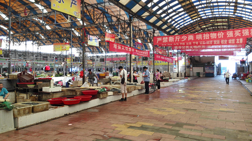 学校后勤管理处、湖工社区作为集贸市场迎检的职能部门,群策群力,按照“创文”的标准、细则,重点做好以下工作:一是清理规范摊位,劝导摊主并帮助其整理摊点,特别是蔬菜摊和水果摊,在既不影响经营户正常的经营的情况下有序推进文明创建工作的进程。二是规范卖鱼摊点的宰杀入池问题,防止地面宰杀造成的蝇虫过密问题,并再三提醒经营户:池水要倒入下水道,以免打湿路面,影响行人。三是增加清扫次数,及时清理地面垃圾并冲洗清洁台面地面,不留卫生死角。四是再次全面检查要求悬挂营业执照与食品经营许可证,确保两证齐全,没有遗漏;加强巡查力度,叮嘱饮食从业人员佩戴在有效期内的健康证,按规定着工作服、戴工作帽。五是宣传讲解创建全国文明城市的意义与具体要求,并呼吁广大经营户自觉加入到创文的行列中来。