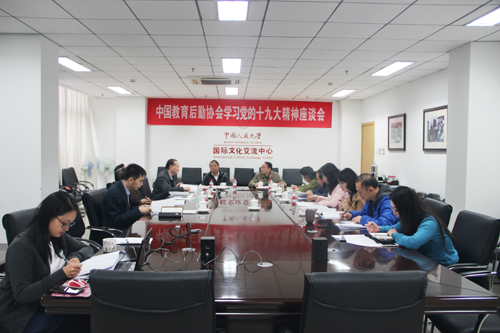 党的十九大开幕以来,习近平总书记作的十九大报告在教育系统内引起强烈反响,作为教育后勤行业组织,协会肩负着为教育事业发展提供服务和保障的责任和使命,为深刻认识行业组织在实现国家战略发展规划中应起到的作用,深入思考如何更好的为在校师生和行业战线服务,精确领会习近平总书记报告的精髓和要义并将协会的发展理念统一到十九大精神上来,10月25日上午,中国教育后勤协会(以下简称“协会”)召开学习党的十九大精神座谈会。协会会长程天权、常务副会长张柳华、副秘书长郑广天、协会秘书处党支部全体党员及秘书处工作人员参加座谈会,会议由副会长兼秘书长黎玖高主持。