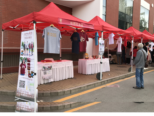 指引校友,设立礼品临时服务点。10月3日当天,在原有固定销售网点的基础上,在明德广场和公教一楼前分别设立了纪念品购物临时服务点,在展示校园纪念品的同时,为校友购物留念提供了指引服务。