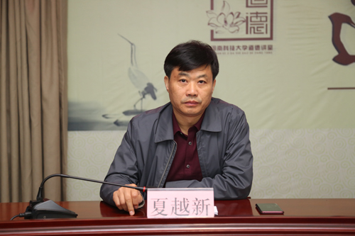 河南省高校后勤协会秘书长夏越新发言。他表示,后勤协会举办高校后勤办公室信息化研修班,其主要目的是搭建学习交流平台,进一步密切协会秘书处和各校后勤办公室的关系,希望此次研修班能够切实指导、提升高后勤办公室信息化建设水平,助力各高校办公室后勤信息化建设、信息化人才培养。