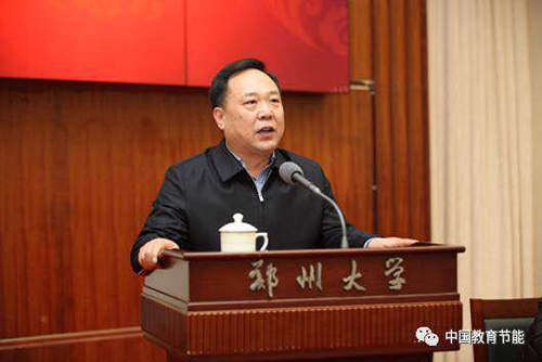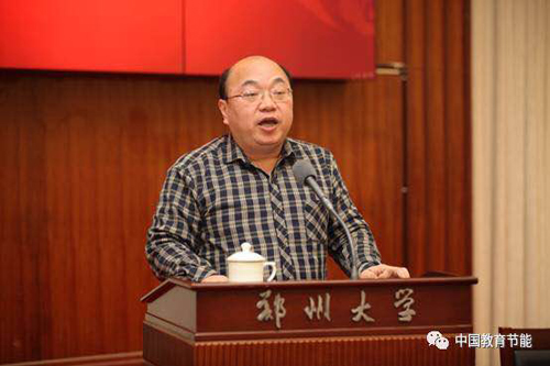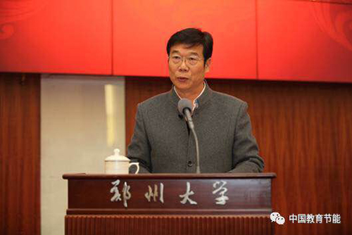 郑州大学党委书记牛书成首先在成立大会上致辞,他代表郑州大学全体师生员工,对各位领导、专家的到来表示诚挚的欢迎,向各上级部门以及兄弟院校对郑州大学各项工作的关心、支持与帮助表示衷心的感谢。随后他简单介绍了郑州大学的基本情况,以及近些年以来在能源管理工作方面所取得的成绩。最后,牛书记希望能够以此次大会为契机,吸收借鉴先进的节能经验和宝贵意见,不断加强郑州大学的节能工作,持续推进节约型校园建设,不断加快绿色校园与双一流大学建设,为决胜建设小康社会做出更大的贡献。