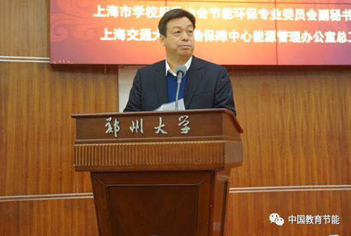 河南工业大学后勤管理处处长宋伟代表河南工业大学向在场嘉宾做学校节能工作分享。