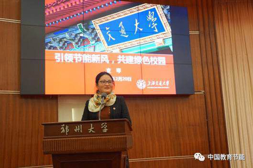 上海市高校后勤协会节能环保专业委员会副秘书长、上海交通大学后勤保障中心能源管理办公室总工支琴代表上海交通大学向大会作题为《引领节能新风,共建绿色校园》的报告。