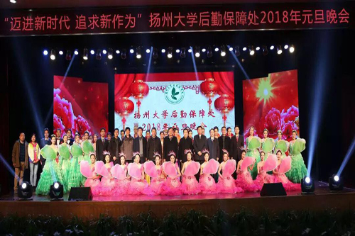12月29日晚,扬州大学后勤保障处“迈进新时代,追求新作为”2018年元旦晚会在荷花池校区大学生活动中心三楼小剧场成功举行。校党委副书记、副校长刘祖汉,副校长黄建晔、陈国宏出席晚会。副校长洪涛致新年贺词。