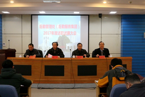 1月3日下午,后勤管理处(后勤服务集团)在会议中心第三报告厅举行2017年处级领导干部述责述廉及科室(中心)述职大会。江苏大学副校长陈龙出席大会并总结讲话。后勤管理处(后勤服务集团)处级领导干部、科级干部和七岗管理骨干参加了会议。大会由后勤管理处(后勤服务集团)处长(总经理)沈良钧主持。