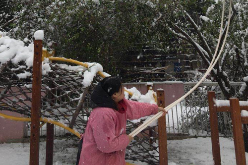 后勤保育老师亦加班加点,积极启动紧急安预案,及时做好雪中清扫工作之余,也对高空积雪等安全隐患认真进行排查清除,做好下周复园准备。