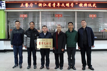 1月18日下午,杭州电子科技大学第三餐厅“浙江省青年文明号”授牌仪式在三餐顺利举行。文一公司党总支书记、董事长李中昌、文一公司总经理王文虎出席仪式并为该集体授牌,校团委书记杜加友、公司副总经理王劲峰以及中心的主要领导和各部门负责人参加了仪式。