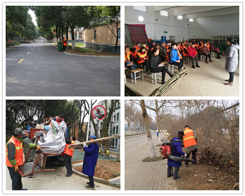 校园环境在假期也是一如既往的干净整洁,保洁人员年后早早的召开了新学期工作布置会,道路清洁、垃圾清理、树枝修剪等工作是有条不紊的进行。