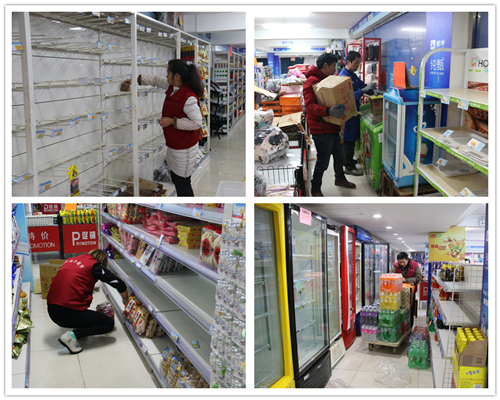 学生区歇业的几所教育超市,货架全部清洁干净,商品检查合格后重新摆放整齐,保证店面洁净和商品安全。