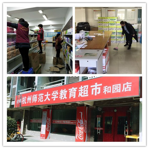 年初,后勤商贸服务中心教育超市新门头第一次公开亮相:下沙1号超市更名为杭州师范大学教育超市和园店,下沙2号超市更名为杭州师范大学教育超市仁园店,仓前1号超市更名为杭州师范大学教育超市诚雅店,仓前2号超市更名为杭州师范大学教育超市博雅店。