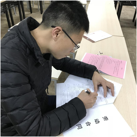 3月2日,集团全体员工正式报到第一天,我们也迎来了新学期第一个与后勤签订劳动合同的员工——田瑞松,他是上学期期末由集团层面选聘招录的,办理入职手续后的他将赴饮食服务中心餐厅主任助理岗位工作。与此同时,集团层面新招录的其他3名新同事也将陆续到岗。
