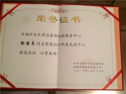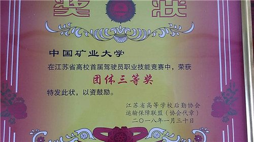 3月31日,江苏省高等学校后勤协会运输保障联盟2017年年会暨各级、各类先进集体、先进个人表彰大会在东南大学召开。我校运输服务中心荣获江苏省高校后勤运输保障2017年度先进集体、江苏省高校首届驾驶员职业技能竞赛团体三等奖和最佳组织奖,运输服务中心驾驶员徐国良、张坚分别荣获先进个人及技能大赛个人奖。