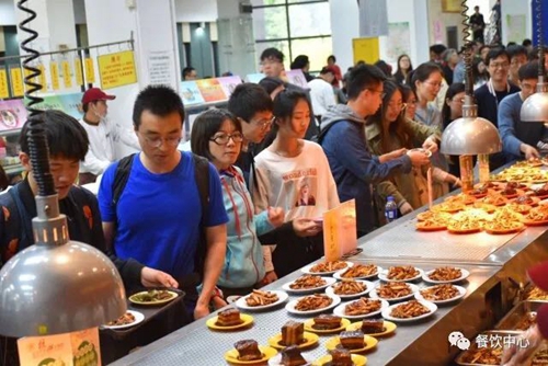 本次美食节共推出川、浙、闽、新等多种地方风味的百余种中式菜肴、特色小吃、中西式糕点等。短短五天时间,食堂师傅、烹饪大师和广大师生真真切切感受到美食节的火热气氛。同学们竞相进行线上的美食直播和线下的排队品尝,餐饮中心美食节的单篇推送文章点击量达到7万余次,给予前来献艺的兄弟院校名厨和烹饪大师们以极大的鼓舞。