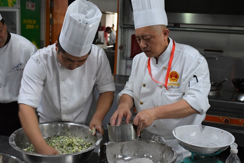 同时,中心与各位烹饪大师就如何将中华名菜制作与校园餐饮要求相符合进行反复沟通和协调。从设施设备安全检修、各食堂各部门工作对接、活动接待,到应急预案的制定、实施,中心做了周密的安排部署。在学校相关部门、兄弟院校、行业协会的共同努力下,餐饮中心举全员之力,确保本届美食节取得成功。