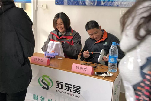 常熟移动项目保洁员罗娟芬做好写字楼卫生清洁工作后,还义务为将业主的破损衣物缝补好。