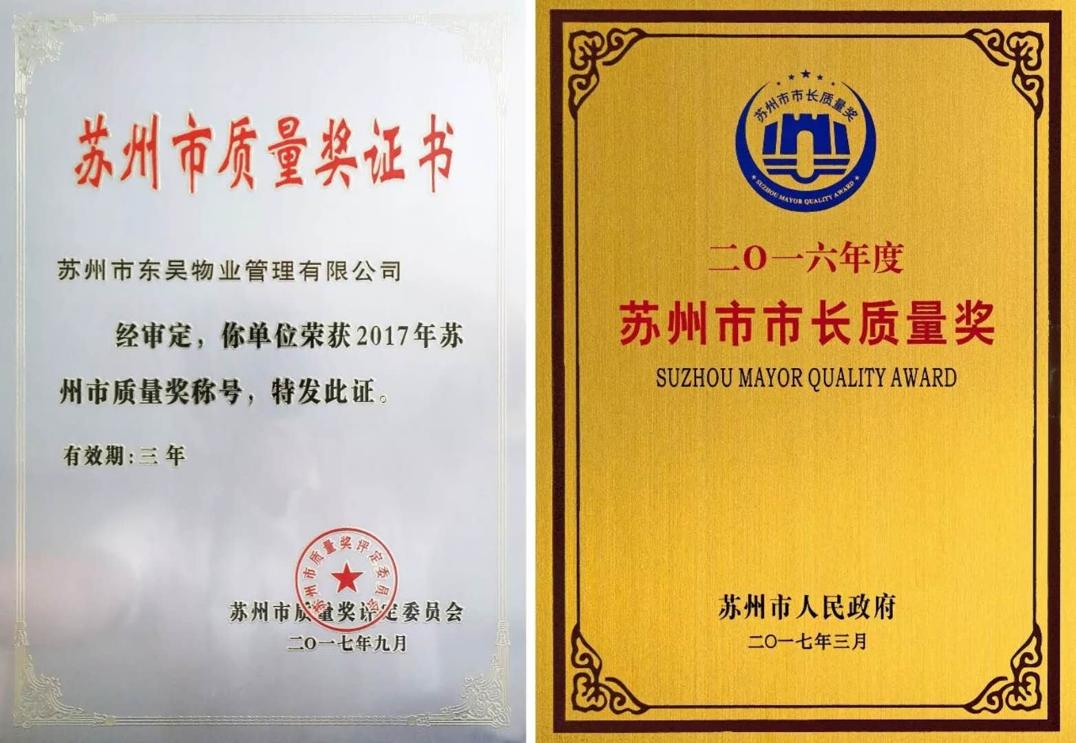 东吴物业以“安全与品质管理”双体系制度为依托,建立项目、分部、公司三级监控检查体系,先后获得市优项目荣誉称号26个,省优项目荣誉称号12个,全国教育后勤系统优秀示范项目1个。