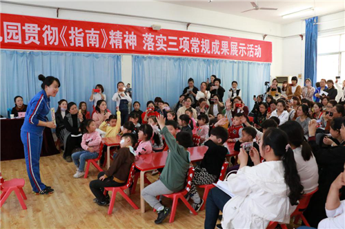 4月11日,100余位来自焦作市各区县教研员、各幼儿园园长及骨干教师到河南理工大学附属幼儿园,就集体阅读、户外体育活动、集体备课等三项常规成果进行了观摩学习。