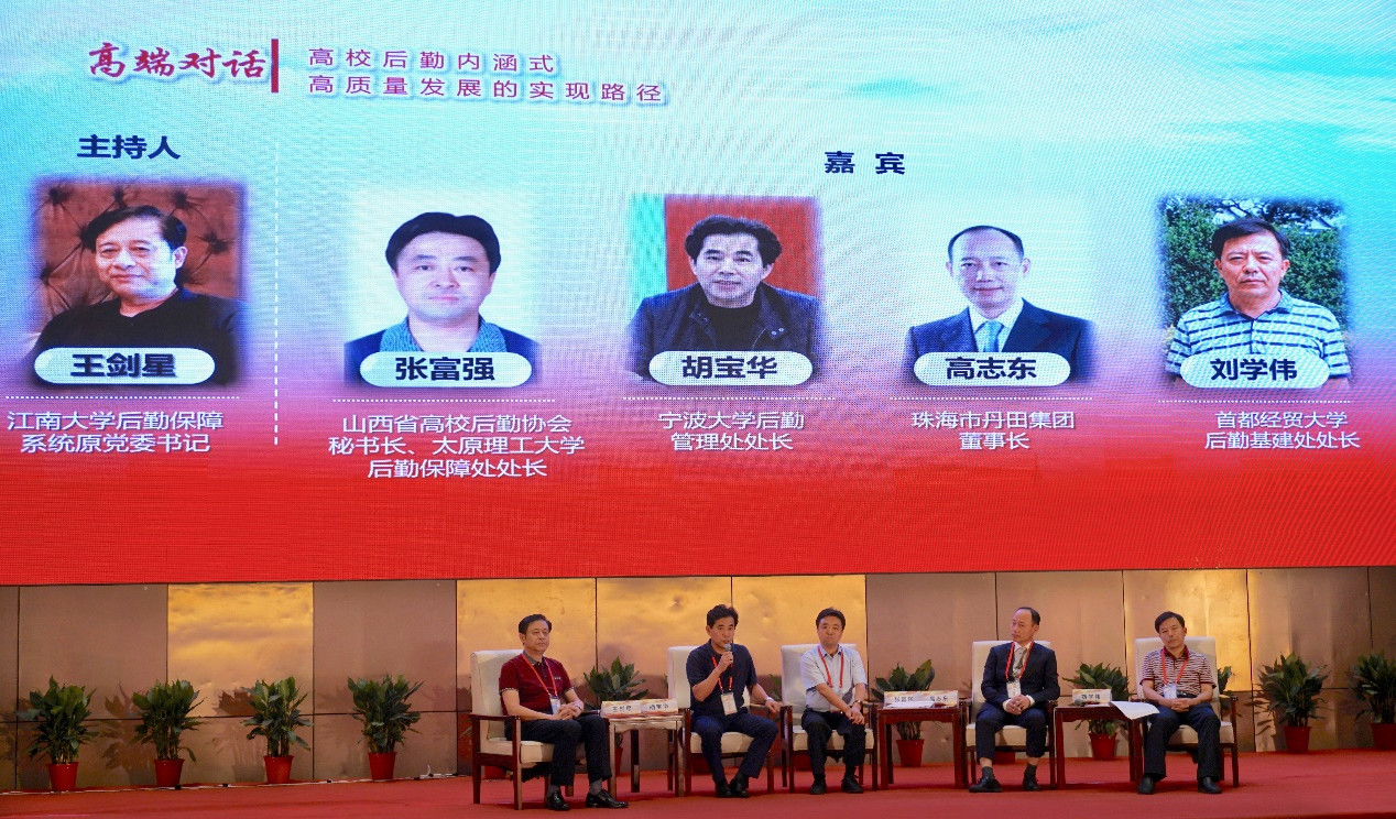 下午的高端对话环节分为两组进行,第一组对话由江南大学后勤保障系统原党委书记王剑星主持,宁波大学后勤管理处处长胡宝华、太原理工大学后勤保障处处长张富强、珠海市丹田集团董事长高志东、首都经贸大学后勤基建处处长刘学伟参加。第二组由沈阳农业大学总务长张政利主持,首都师范大学副校长李有增、江苏省高等学校后勤协会副会长兼秘书长黄在宇、河海大学校长助理周语明参加。嘉宾们分别从教育行政部门、地方后勤行业组织、学校、企业的不同角度,结合自己的实际工作经验,围绕“高校后勤内涵式、高质量发展的实现路径”进行了对话交流,各抒己见,氛围热烈。