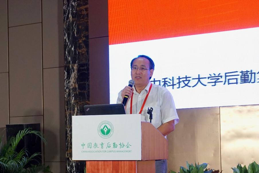 华中科技大学后勤集团总经理张国安以“‘双一流’建设背景下的高校后勤社会化改革”为题发言,首先分析了高校后勤社会化改革面临的新形势:师生需求产生的新变化,后勤服务依托的新技术,机制体制面临的新格局,服务评价提升的新标准,校园市场开放的新领域。他结合华中科技大学后勤社会化的经验和监管成效,从深度融合校园规划、打造服务育人型后勤业态,构建精致后勤服务体系等角度对高校后勤社会化改革提出建议。
