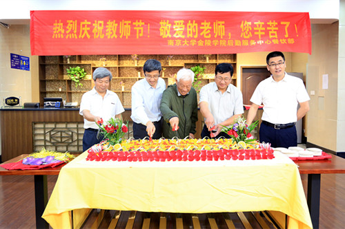 中午11:40,后勤服务中心总经理张家玫主持了活动的开场仪式,南京大学金陵学院院长陈建群、党委书记冯维波等学院领导共同切蛋糕,分享美味,共享节日快乐!