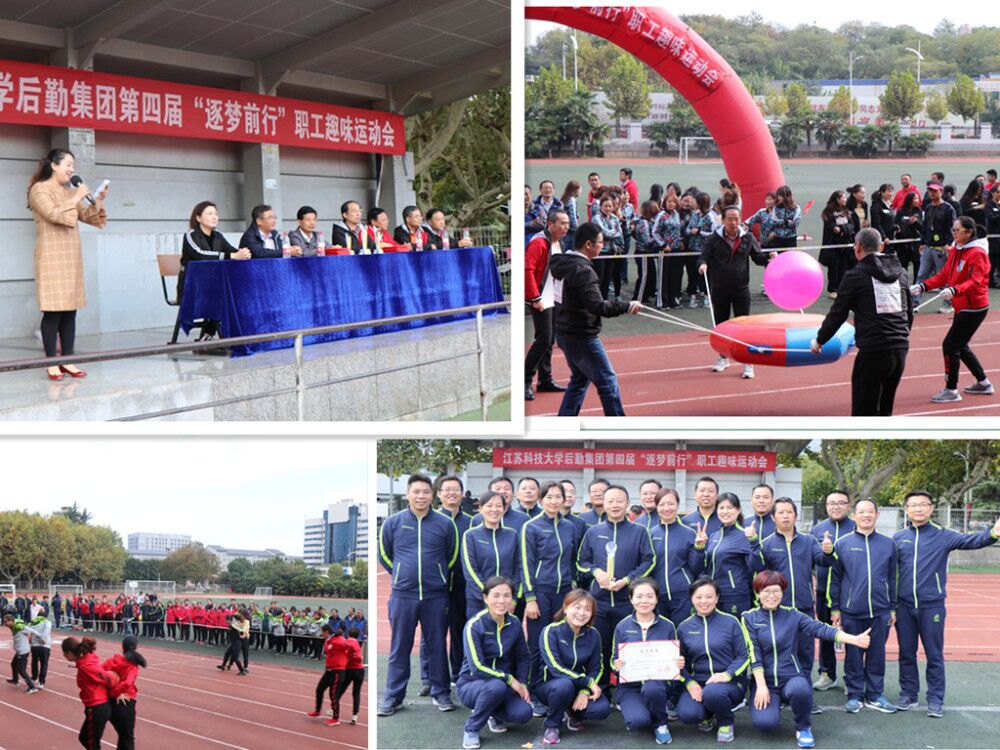 在这生机盎然、秋高气爽、校园风景如画的美好季节里,江苏科技大学后勤集团于10月20日上午,在东校区体育运动场举办了“逐梦前行”第四届职工趣味运动会。开幕式上,集团党委王兴伯书记作了热情洋溢的致辞,蒋春雷总经理宣布运动会开幕。