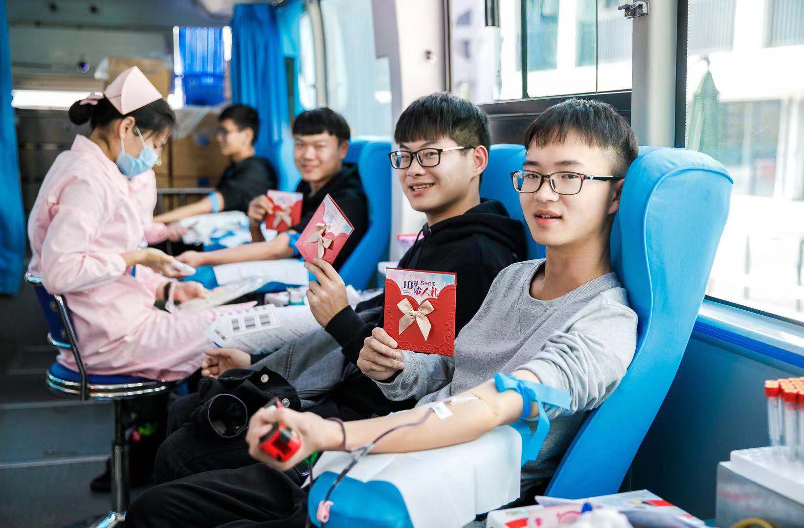 18岁最美年华。并没有轰轰烈烈的仪式,这场“热血青春,祝贺成长”无偿献血暨18岁成人礼活动由安吉校区后勤党支部、安吉县献血办联合举办。献血车前排起长队,00后青年大学生们用行动彰显“大爱”和“成长”的意义。有同学在现场动情说道,“这是送给自己最特别的一份18岁成人礼。” “想到自己可以挽救他人生命,觉得特光荣!”