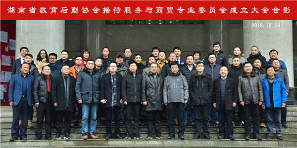 2018年12月28日,湖南省教育后勤协会接待服务与商贸专业委员会成立大会暨第一次主任会议在中南大学召开。湖南省教育后勤协会会长杨定忠、中南大学党委常委副校长黄健陵、湖南省教育后勤协会秘书长夏智勇、中南大学后勤保障部部长蔡恒学以及来自全省21所高校的38位代表参加了会议。大会由湖南省教育后勤协会接待服务与商贸专业委员会秘书长李江涛主持。