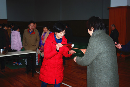 此次趣味运动会以“用热情迎接工作,用健康武装身体”为主题,形式多样、内容新颖,共设置了二龙戏珠、夹乒乓球、袋鼠跳、4人背部顶球接力4个团体项目和定点投篮、保龄球、乒乓球颠球3个个人项目,集趣味性和团体性于一体。