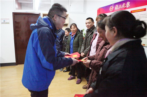 陈碧远代表后勤对10位职工的辛勤付出表示感谢,并向大家致以新年的问候,勉励各位困难职工在家庭生活相对困难的当前,不被眼前的困难吓倒,要继续树立信心,克服困难,相信生活一定会越来越好。同时,祝愿大家在新的一年里,身体健康,生活幸福。