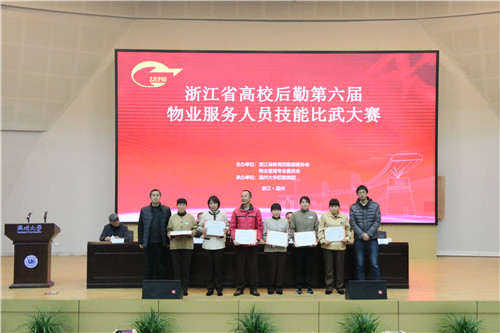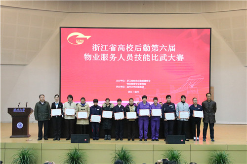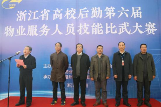 为进一步提高员工专业技能和服务水平,积极营造“比、学、赶、超”的良好氛围。1月5日,浙江省高校后勤第六届物业技能比武大赛在我校顺利举行。温州大学副校长、浙江省教育后勤基建协会副会长蔡曙光、浙江省教育厅计划财务处主任周仙宝、协会物业管理专业委员会主任、杭州电子科技大学文一公司党总支书记、董事长李中昌、协会物业管理专业委员会副主任、浙江工业大学容大后勤集团总经理许天雷、总裁判长、浙江大学后勤集团总经理林旭昌、温州大学后勤集团总经理徐小兵、温州大学后勤集团党总支书记陈兴桂、浙江省教育后勤基建协会秘书处主任王跃光等领导以及来自全省30所高校的选手、领队等100余人参加了大赛活动。