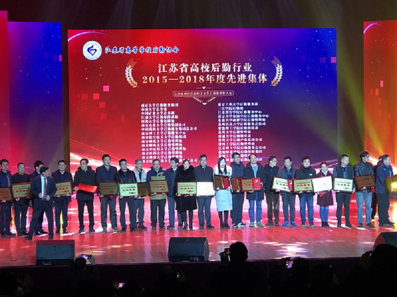 1月10日,由江苏省高等学校后勤协会主办,江苏省高校后勤协会思想文化与人力资源管理专业委员会、江苏师范大学和南京大学金陵学院承办的“江苏省高校后勤职工文艺汇演暨表彰大会”在南京大学金陵学院科学会堂隆重举行。我校后勤保障部获“江苏省高校后勤行业2015-2018年度先进集体”荣誉称号,何龙山同志、沈建平同志被评为“江苏省高校后勤行业2015-2018年度先进个人”,瞿灵杰同志被评为“2018年度江苏省高校后勤行业技术能手”。