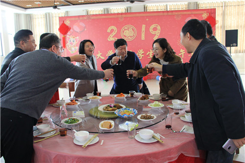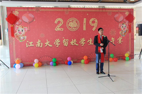 戌护千祥追日去,亥岁迎来锦绣春。2月4日中午11:30,学校江南苑食堂二楼张灯结彩,笑语欢声,2019年江南大学留校学生除夕团拜宴在此隆重举行。无锡市副市长刘霞、政府副秘书长严健媛、教育局副局长符菊成、江南大学校长陈坚、副校长田备、党委副书记戴月波,各相关职能部门和学院领导、老师与近130名留校学生欢聚一堂,同庆农历新年。